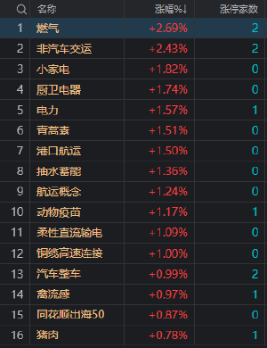午评:创业板指震荡跌0.67% 燃气、家电股集体大涨